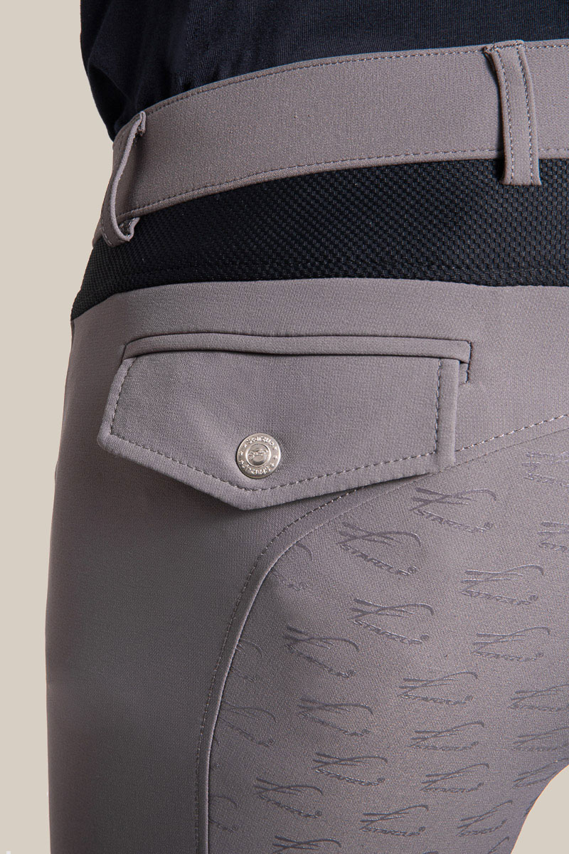 Grâce à ses bandes en lycra sur les jambes et le dos, il est à la fois souple et confortable. La ceinture large et haute dans le dos assure un meilleur maintien. Full grip, il favorise la fixité de la jambe et la tenue en selle.
